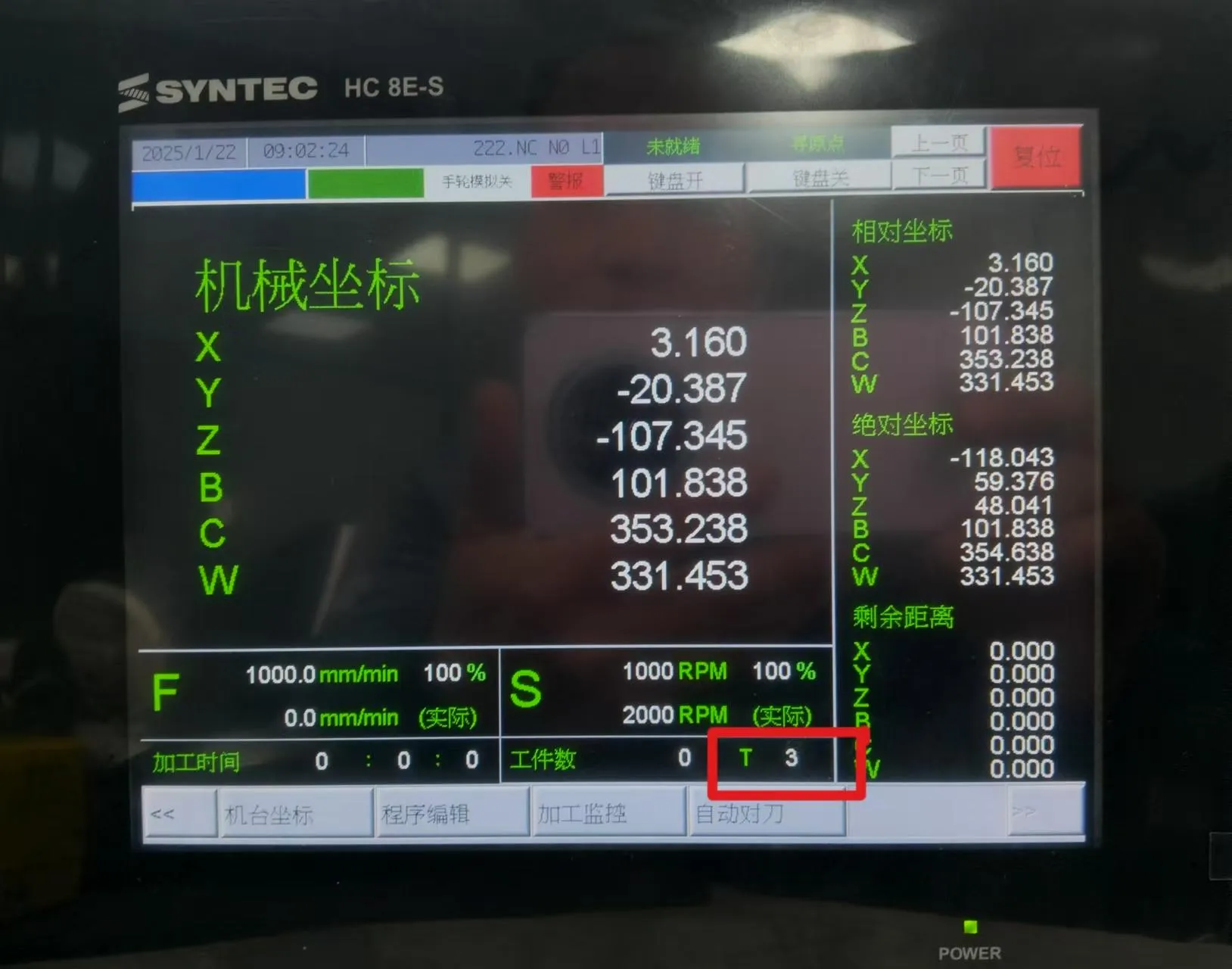 T: tool magazine tool number